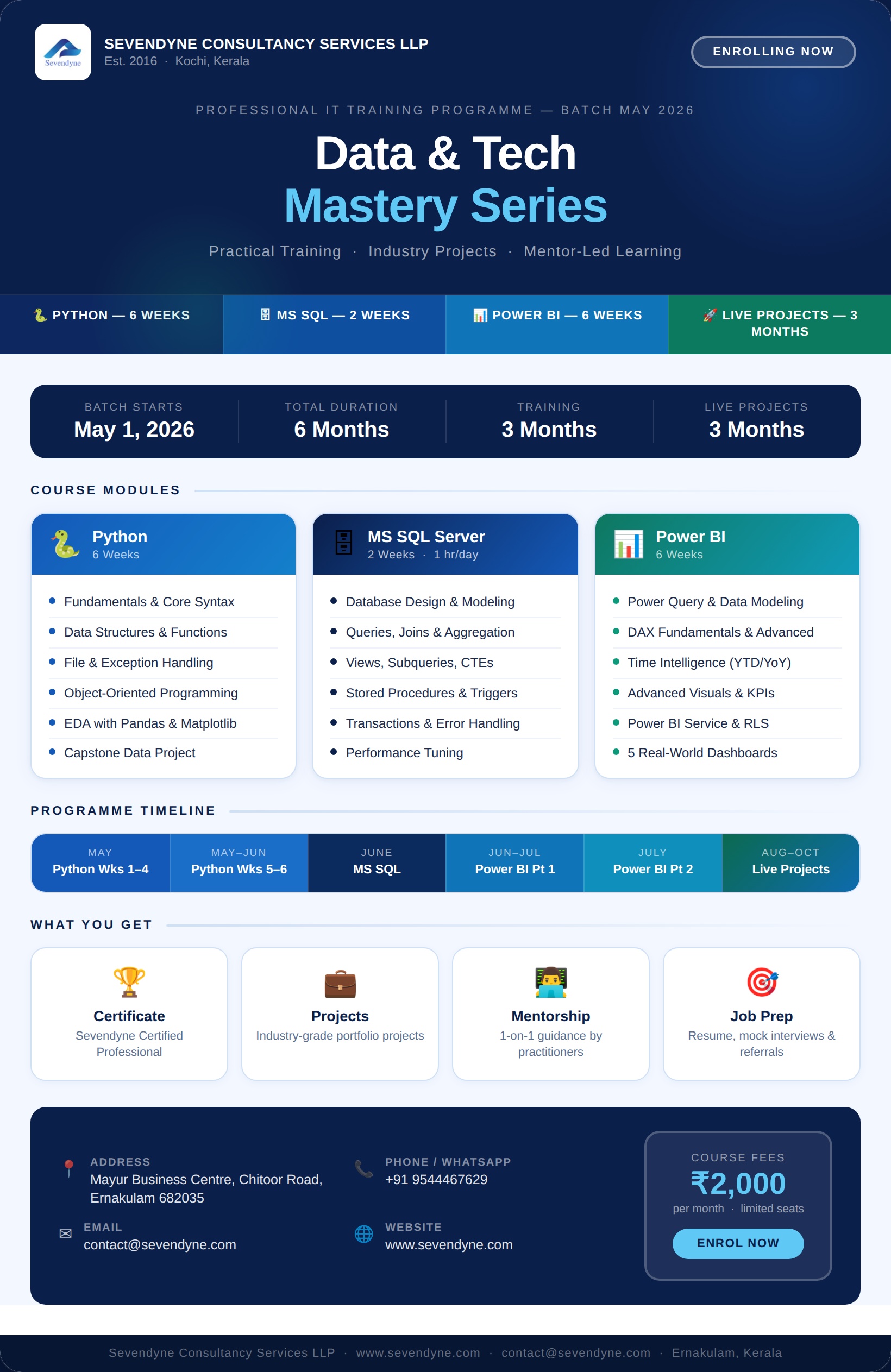 Exact copies from the internal contracts/training_may1_2026 bundle: raster poster, brochure, and HTML where the batch line reads 1 May 2026 and the site line is the homepage. For paid ads and public copy, use the canonical poster above (batch 4 May 2026, cohort landing URL).